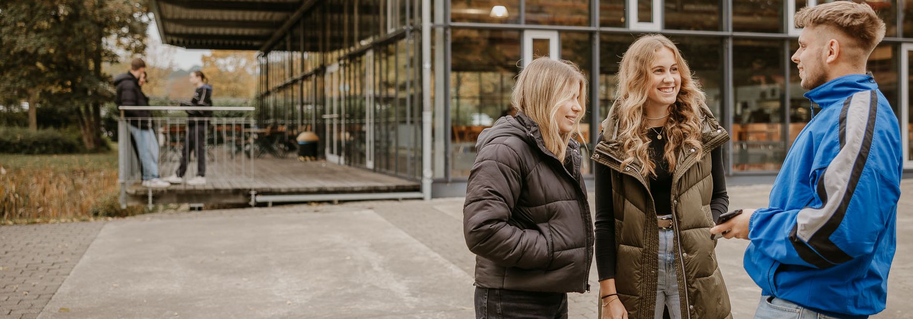 Unsere große und moderne Cafeteria bietet ganztags eine Versorgung mit Speisen, Snacks und Getränken. Sie bietet gleichzeitig Platz, um sich dort aufzuhalten oder zu arbeiten.